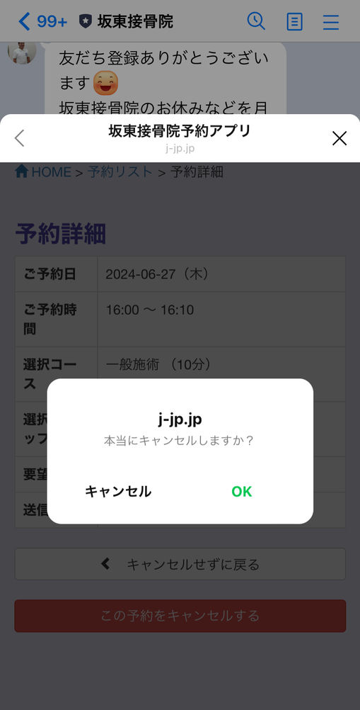 お電話またはLINEからもキャンセル可能です。キャンセル方法はこちら。